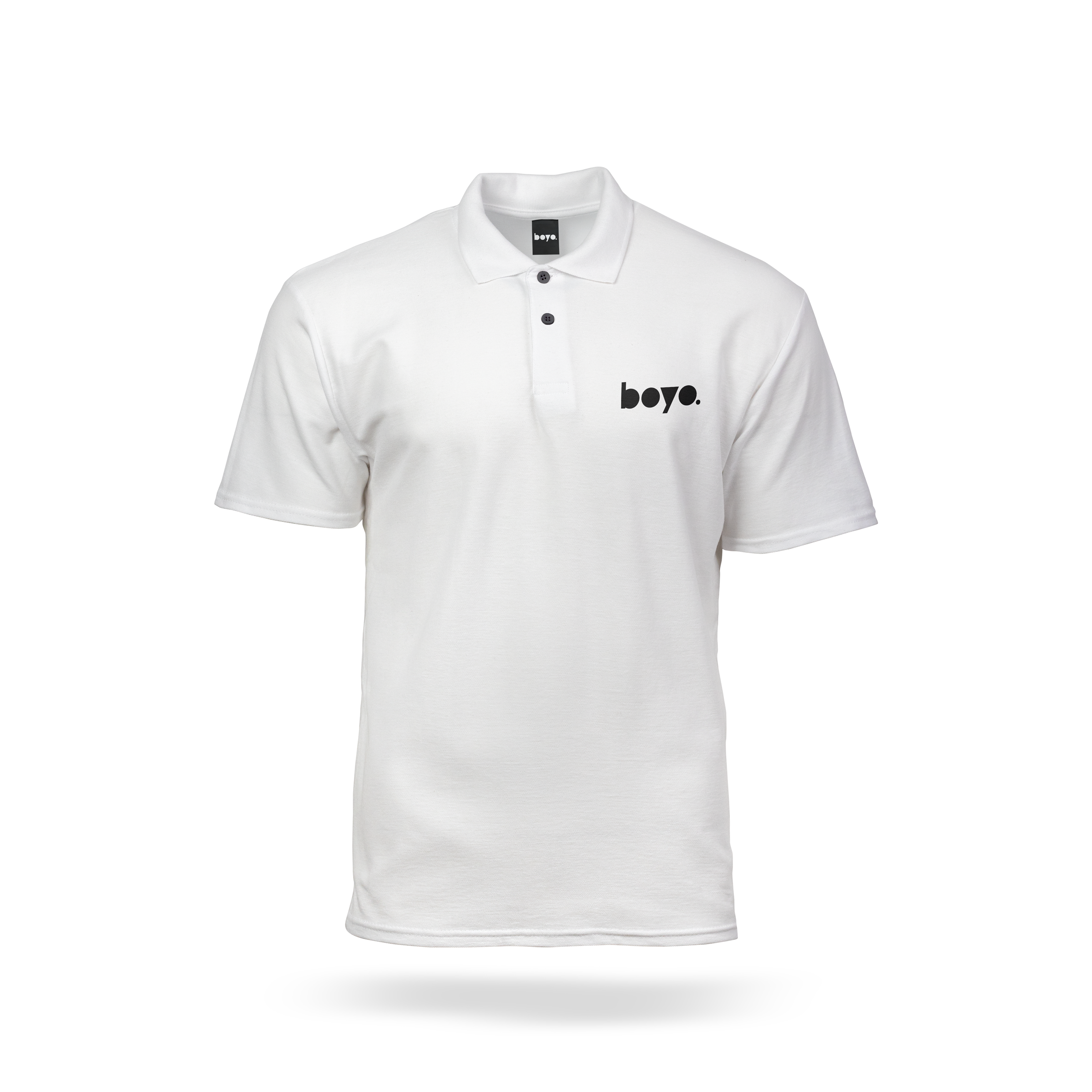 Boyo solid solid mini logo graphic font polo shirt.
